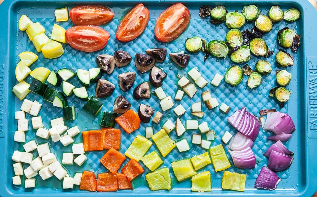 - Freezing – To freeze prepped vegetables, lay the cooked and cooled vegetables out on a sheet tray. Freeze the veggies, then transfer them to a container that is clearly marked with the date and some ideas you have for using the vegetables!